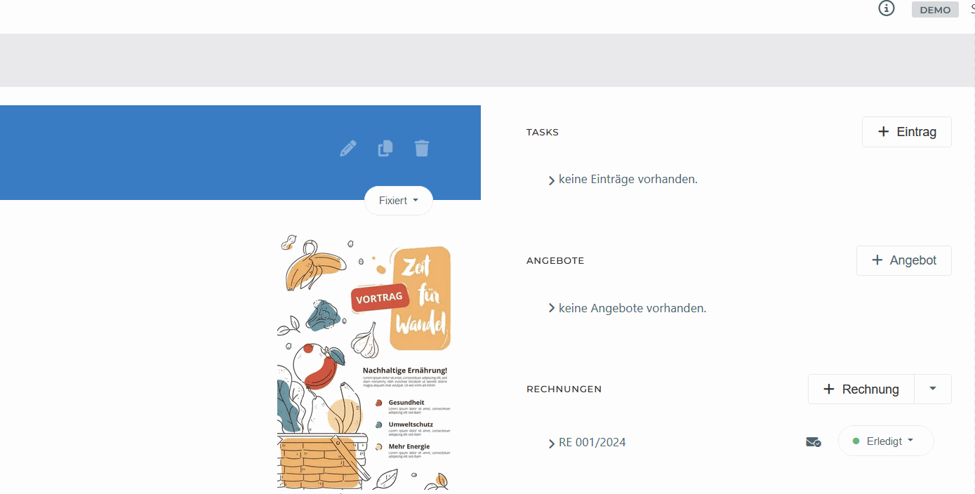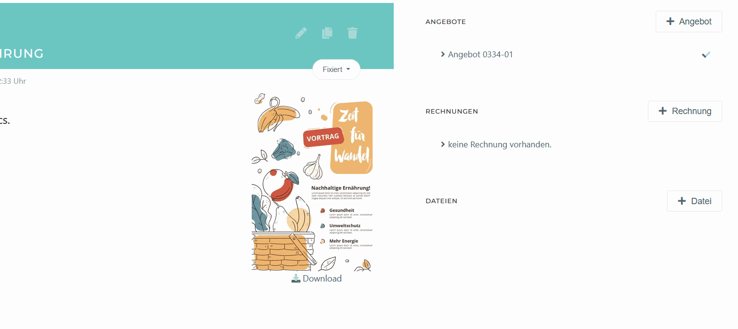 Sie können nun auf die Gesamtsumme der Veranstaltung einen prozentuellen Gesamtrabatt hinzufügen, um Ihre Angebote noch attraktiver zu gestalten, oder nach Abschluss der Veranstaltung, auf der Rechnung einen Rabatt gewähren.