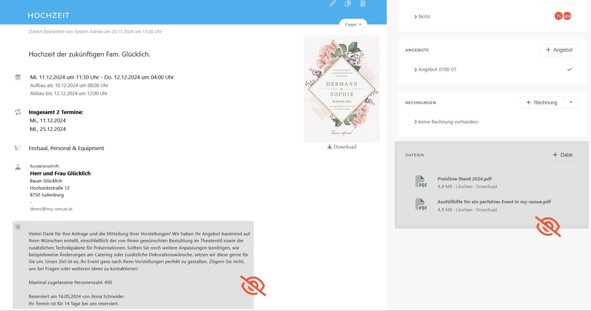 Um die Dateneinsicht noch flexibler zu gestalten, können Sie ab sofort die Berechtigungen für die Eventbeschreibung und für alle abgelegten Dateien pro Benutzer einstellen. Sie können den Datenzugriff je nach Berechtigung erlauben oder verwehren. Diese Funktion sorgt dafür, dass sensible Informationen ausschließlich den richtigen Personen zugänglich gemacht werden.