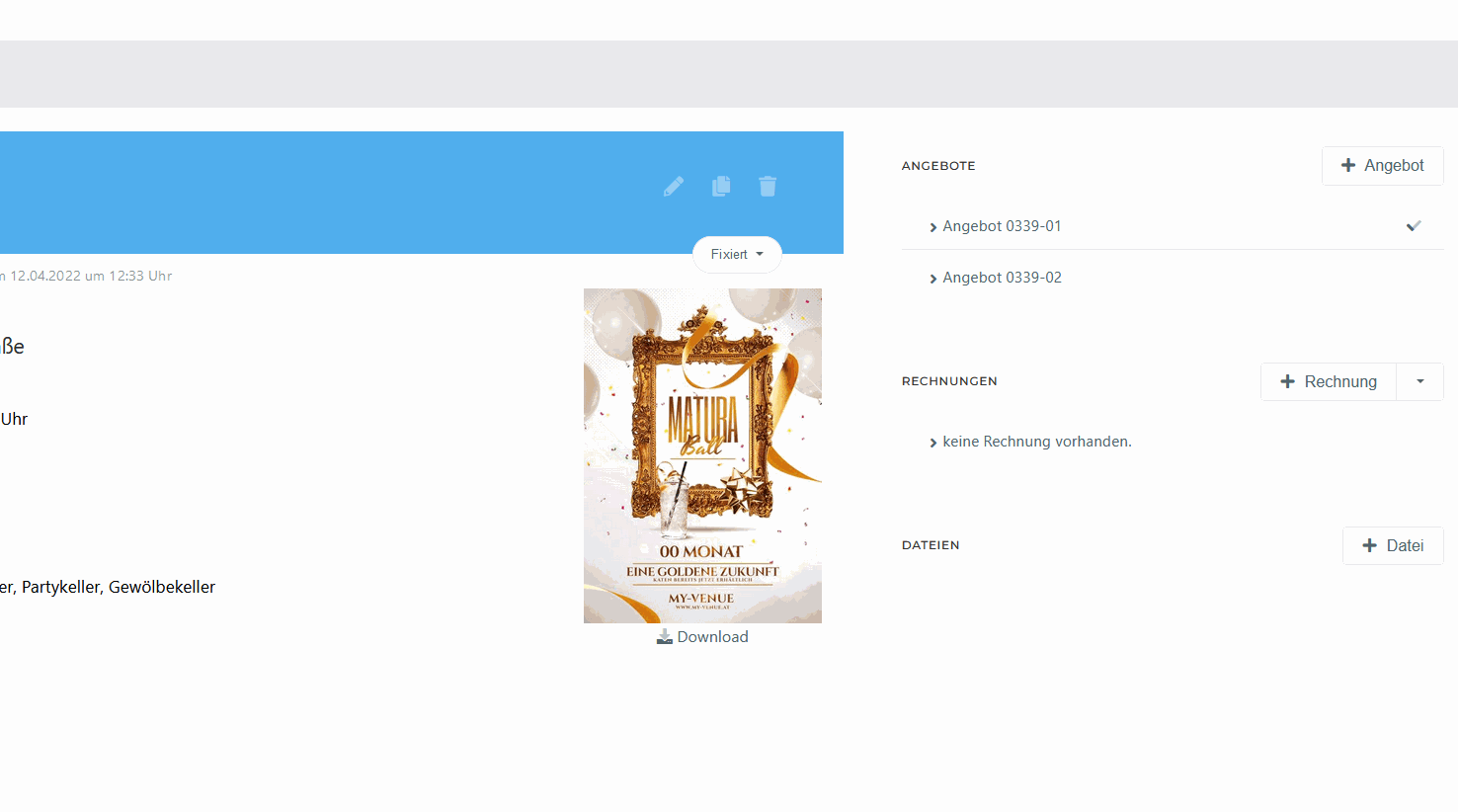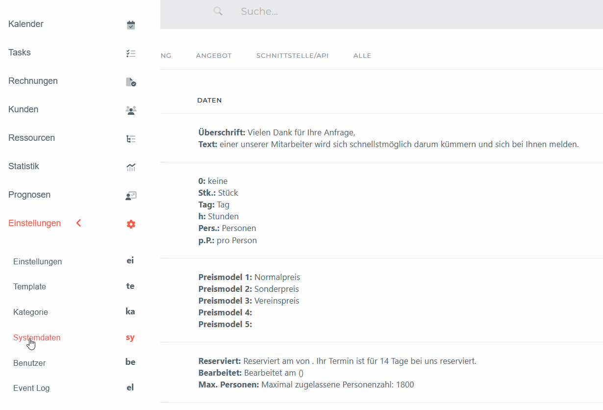 Sie möchten an die Gültigkeit eines Angebots erinnert werden? Mit der Optionserinnerung können Sie einen Zeitraum für jede Veranstaltung festlegen, um Kunden rechtzeitig auf das bestehende Angebot hinzuweisen. Die Optionserinnerung können Sie in den Systemdaten aktivieren. Bei Fragen sind wir gerne für Sie erreichbar.