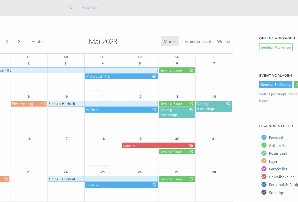 Nicht nur das Userinterface hat mit der neusten Version ein Update bekommen, es gibt auch Änderungen bei der Eventbuchung. Ab sofort werden bei Terminüberschneidungen bereits gebuchte Ressourcen ausgewiesen, um mögliche Doppelbuchungen zu vermeiden.
