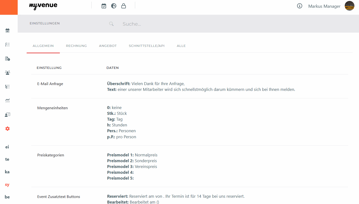 Viele Ressourcen haben oft wiederkehrende Informationen, welche dem Kunden bei jedem Angebot mitgeteilt werden. Mit dem Standardnotizfeld in my-venue, können diese Infos direkt bei der Ressource hinterlegt und bei dem gewünschtem Event ausgewählt werden.