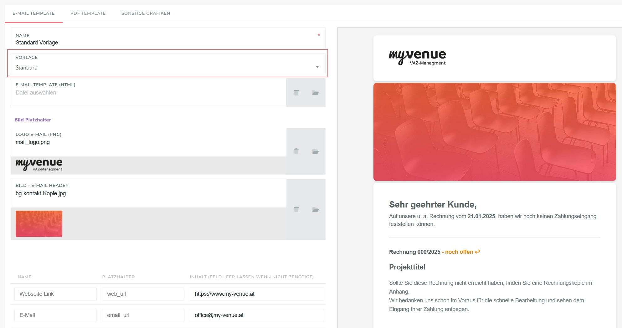 Auch unsere E-Mail-Vorlagen haben ein Update erhalten! Neben der Verbesserung der Darstellung für gängige Mailprogramme wie Outlook und Gmail, stehen Ihnen jetzt zwei neue E-Mail-Varianten zur Verfügung. Eine vereinfachte Vorlage und ein textbasiertes Template ohne grafische Inhalte. Zu finden unter Einstellungen > Templates