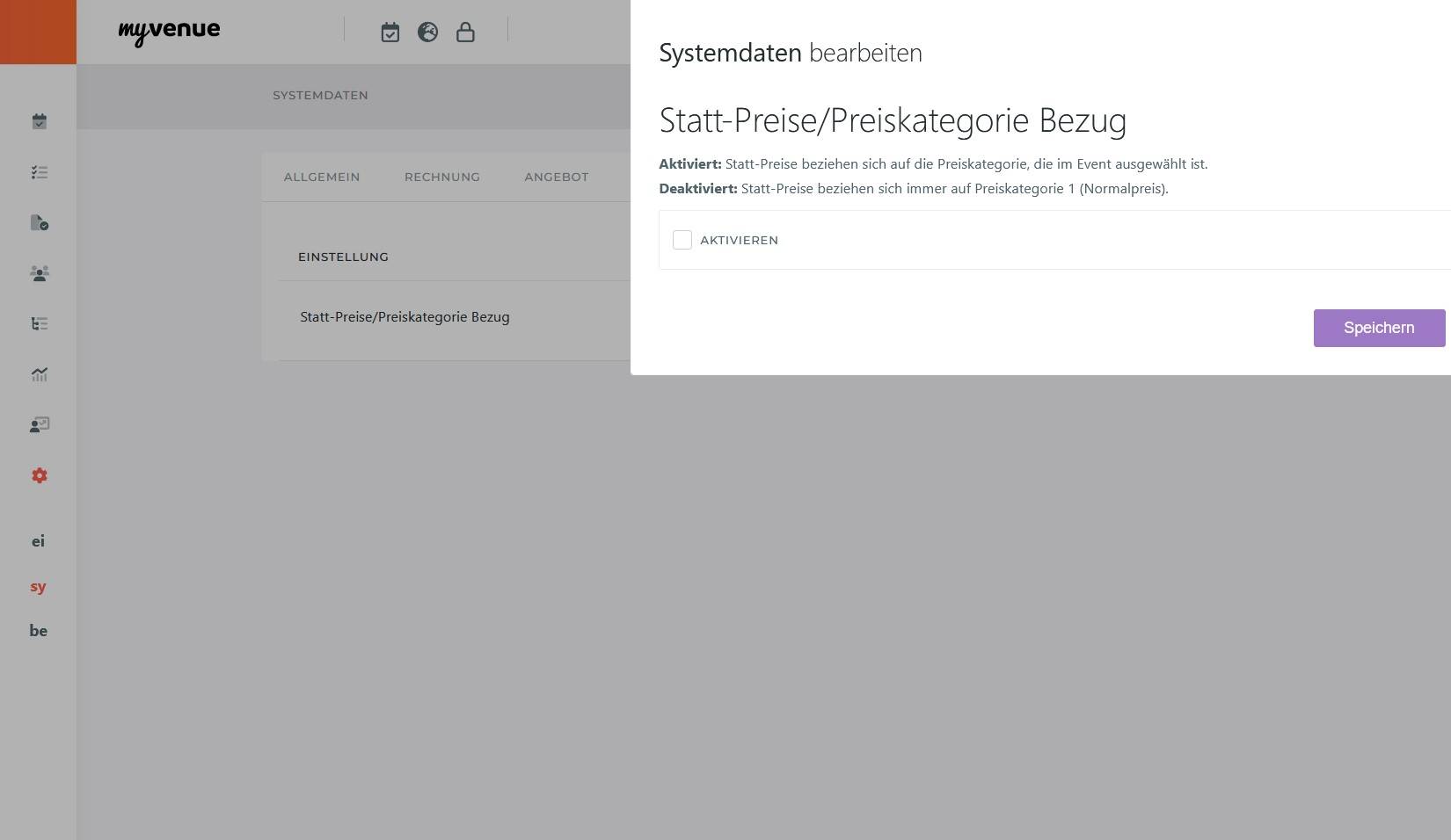 Durch Aktivieren der Funktion innerhalb der Systemdaten, haben Sie die Möglichkeit den Bezug der „Statt-preise“ auf die derzeit ausgewählte Liste im Event zu ändern. Bei deaktivierter Funktion beziehen sich alle Preise immer auf die erste Preisliste.