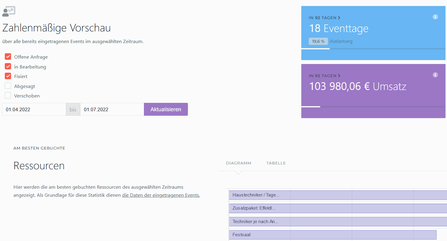 Eine Veranstaltung hat am ersten Eventtag ein anderes Set-up wie am zweiten? Egal wie viele verschiedene "Abschnitte" eine Veranstaltung hat, Sie können nun unterschiedliche Bereiche pro Event splitten und alle Ressourcen den jeweiligen Abschnitten zuordnen. (z.B. Eventtage, Tagesabschnitte, Trennung von Kategorien)